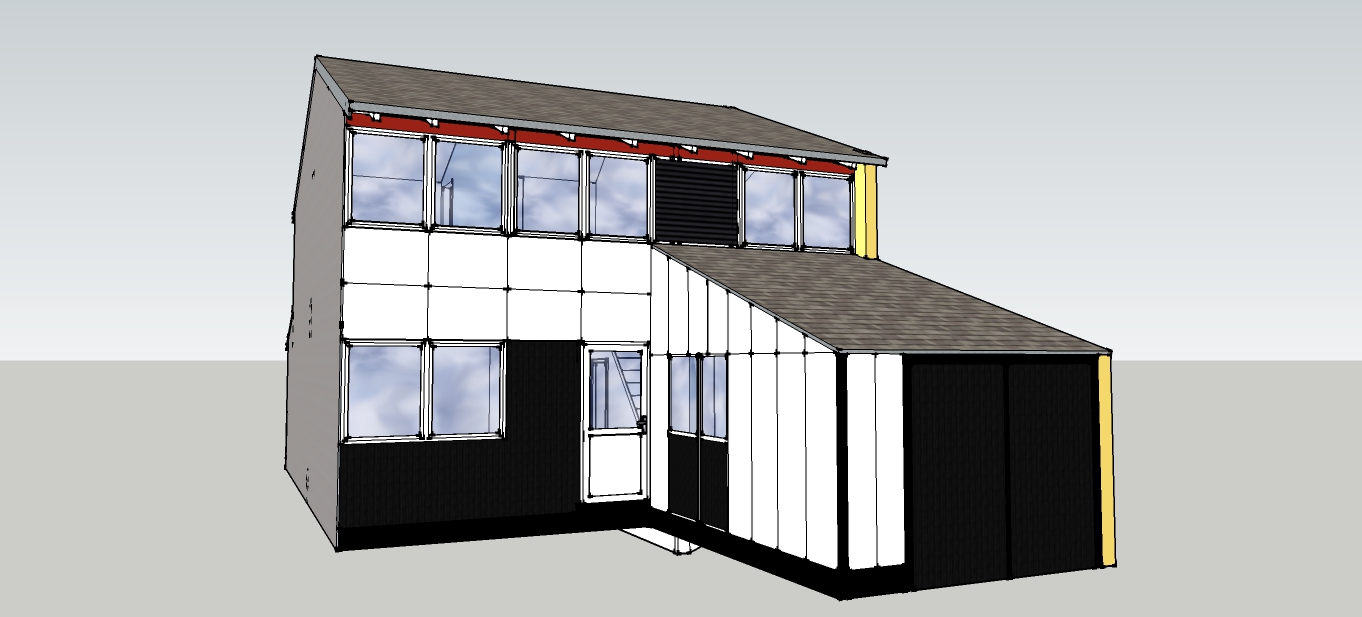 Sketchup er rigtig godt til at visualisere ændringer i udseendet ved f.eks. etablering af tilbygninger, vindfang, ombygning af garage, taghævninger osv. Man kan kopiere huset og sætte dem sammen til en række osv. Det tager nogle timer at blive fortrolig med programmet, men så er der også rigtig mange muligheder. Modellen er rimelig målfast, men det er grove mål +/- 5 cm, og der er også nogle skønhedsfejl.